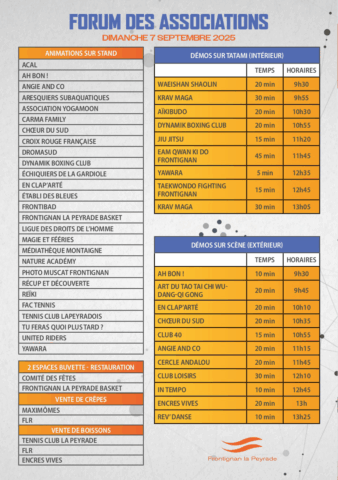 Les nombreux Frontignanais et Lapeyradois en quête d’une activité sportive, culturelle, ludique, caritative ou social, pourront, de 9h à 14h, aller à la rencontre des plus de 120 associations présentes pour l’occasion et profiter des nombreuses animations proposées.