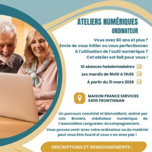 Parcours d’ateliers numériques pour les plus de 60 ans, animé par l’association Languedoc Accompagnement 📅 Chaque mardi, du 31 mars … Lire la suite de « Accompagnement Numérique Seniors »