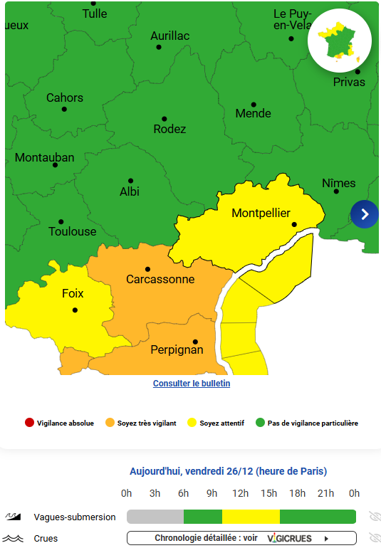 En outre, Météo France place le département en vigilance jaune orage lundi 22 décembre 2025 à partir de 6h00.