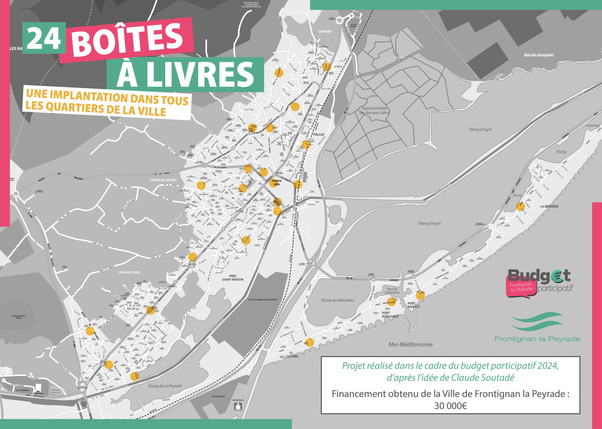 Durant le mois de novembre, ce ne sont pas moins de 24 boîtes à livres qui ont été installées par les équipes techniques de la ville, disséminées dans les différents quartiers. Ainsi, quatre bibliothèques de rue ont été implantées par secteur correspondant aux délimitations des six comités habitants (Coeur de ville, La Peyrade, La Plage, Barnier- Crozes-Pielles, De la vigne au canal, Au pied de la Gardiole). Dans le même temps, les membres des comités habitants ont participé au choix de la localisation idéale des boîtes à livres, entre facilité d’accès et sécurisation de l’emplacement.