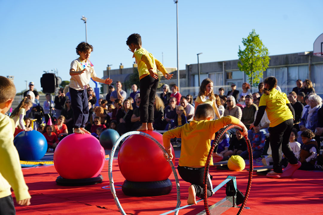 Encadrés par les éducateurs sportifs de la municipalité et l’école de cirque La Boîte aux Cirquouités, les élèves ont progressivement apprivoisé plusieurs disciplines circassiennes, développant à la fois leur motricité, leur confiance en eux et leur créativité.