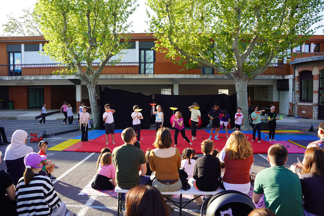 Mardi 7 avril, dans la cour de l’école des Lavandins, puis jeudi 9 avril à l’école Anatole-France, élèves, familles et enseignants ont assisté à des démonstrations pleines d’énergie. Jonglage, équilibres, acrobaties, etc., les enfants ont su captiver leurs fans venus en nombre et partager leur enthousiasme, dans une ambiance conviviale et chaleureuse.