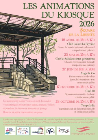 Premier rendez-vous organisé par le Collectif le Kiosque, créé par les associations Club loisirs La Peyrade, les Solidaires inter-générations, le Club 40, Angie & co et le Temps Jadis, en partenariat avec la Ville de Frontignan la Peyrade. Autour de démonstrations de danse, chorales, théâtre et expositions de peinture, ce nouveau collectif propose chaque mois au public de partager un moment festif et convivial, valorisant la culture associative locale.