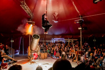 Cette compagnie franco-suédoise nous emporte dans une aventure grandiose, mêlant acrobaties de haut vol et musique live. Les sentiments sont au cœur de ce rendez-vous où les huit artistes abordent l’amour avec un grand A : l’amour romantique, l’amour de l’art, l’amour de l’artiste pour le public et vice-versa. Trapèze, funambulisme, jonglage, suspensions, main-à-main s’enchaînent pour dévoiler une vision des sentiments qui mélange passion et petits riens. Un cirque de l’utopie, généreux, qui réchauffe les cœurs.