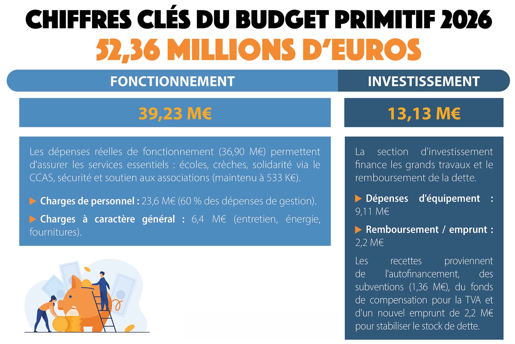 Le budget est l’acte majeur qui traduit en termes financiers les engagements et ambitions pour le territoire d’une collectivité territoriale. Pour 2026, le budget de la ville de Frontignan la Peyrade prévoit un équilibre à plus de 52 millions d’euros, répartis entre le fonctionnement quotidien des services et l’investissement pour les projets de ville. Récapitulatif des principales lignes et des grands axes financiers de la commune pour l’année qui débute.