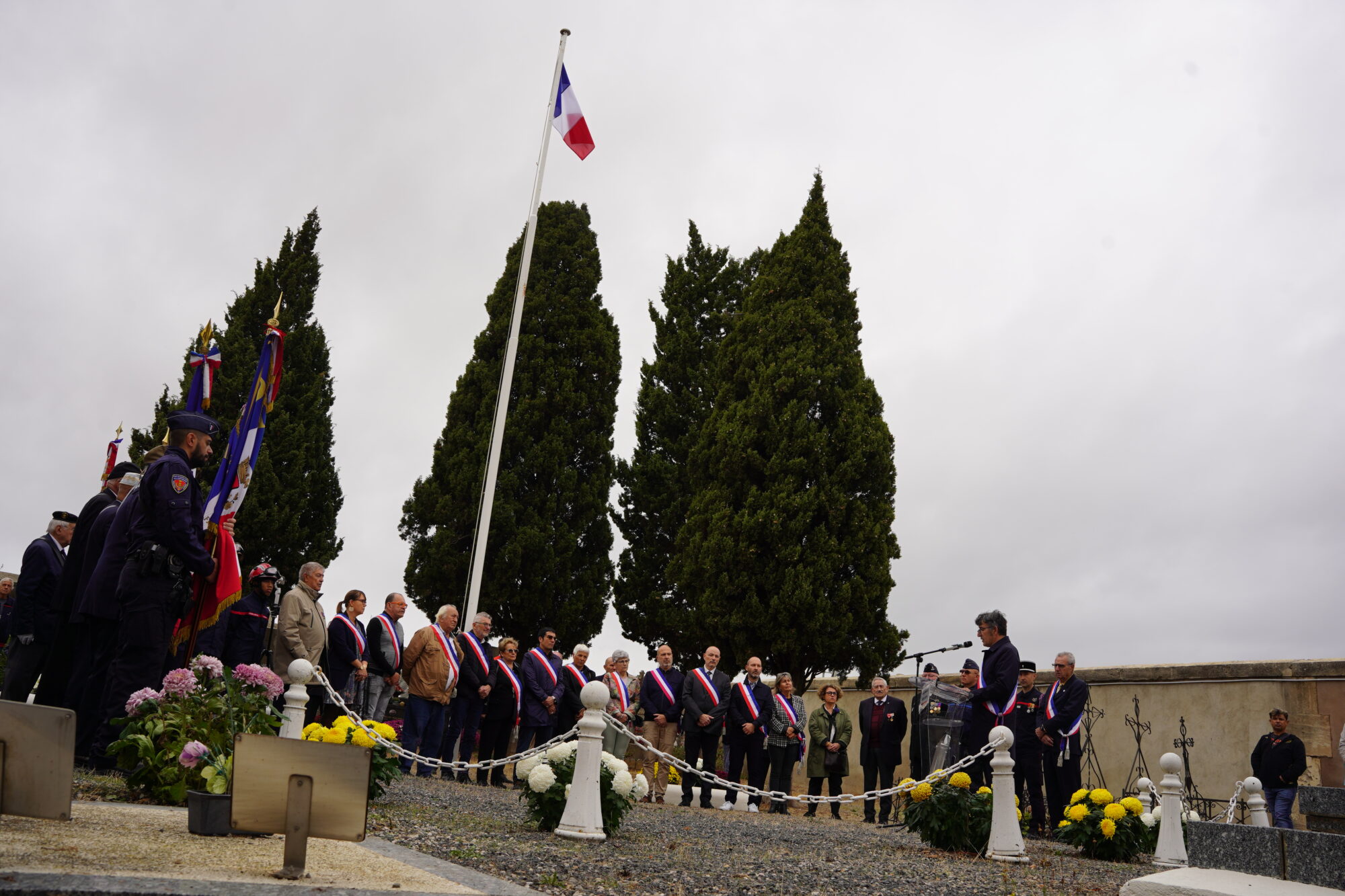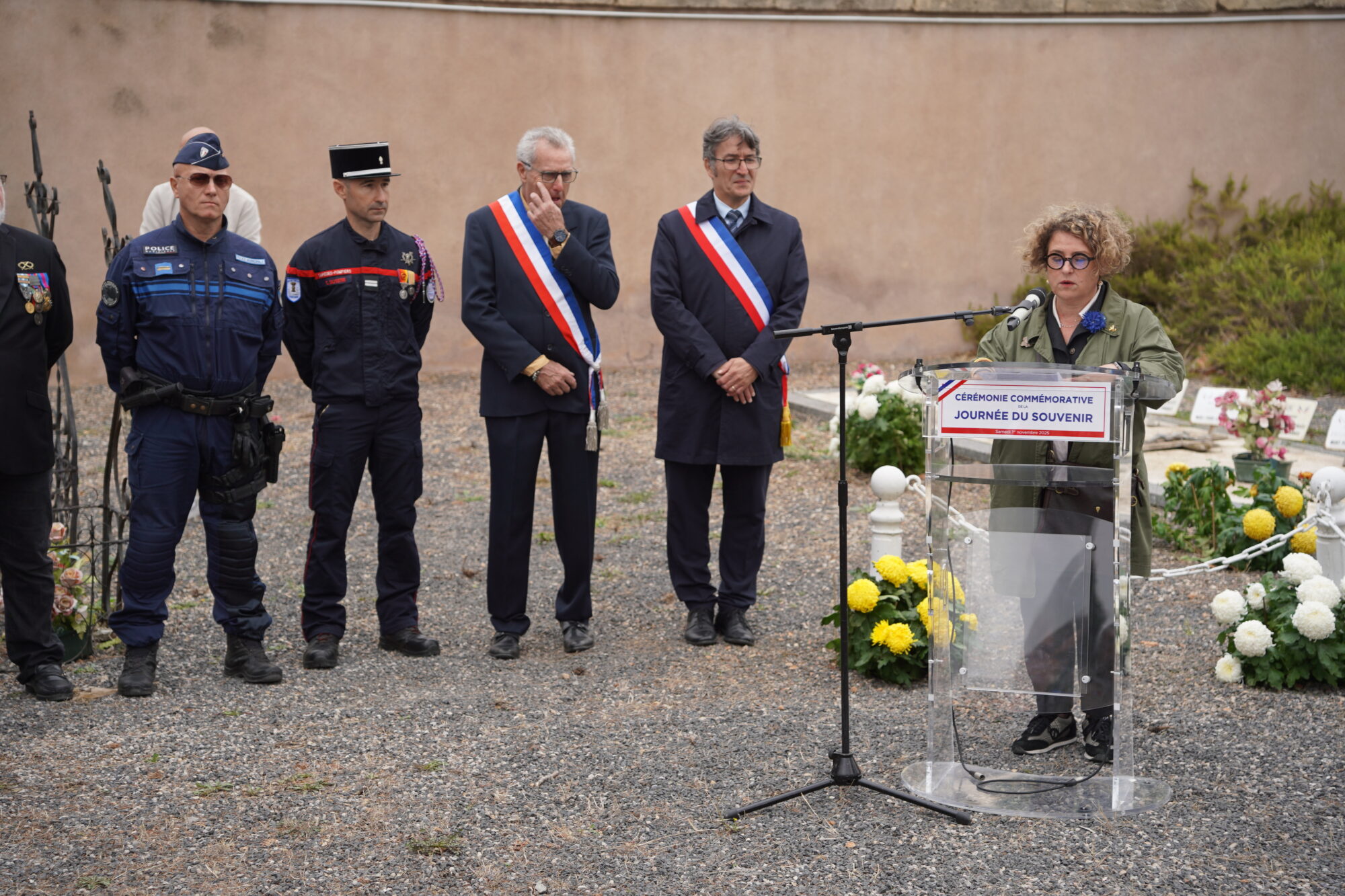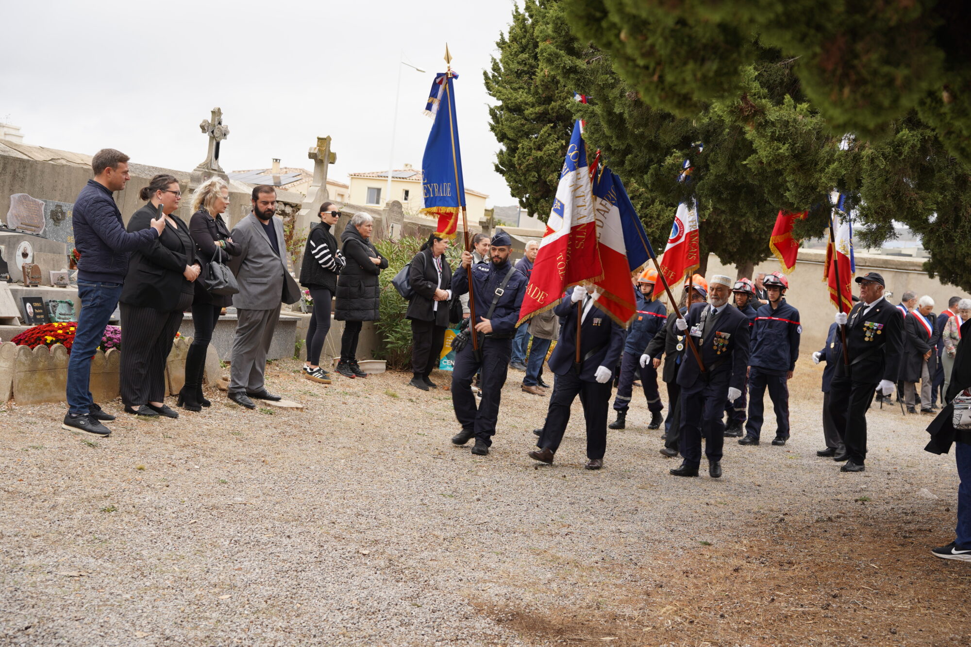 La commémoration s’est déroulée dans le carré du souvenir au cimetière situé route de Balaruc, samedi 1er novembre. À l’arrivée du cortège précédé des porte-drapeaux, la cérémonie a débuté, réunissant dans le recueillement, habitants, anciens combattants, sapeurs-pompiers, de nombreux élus de la ville, dont le maire et le conseiller délégué au patrimoine communal et au devoir de mémoire, ainsi que l’association du Souvenir Français section Sète / Frontignan. Sa présidente, Véronique Gautier Robergeon a pris la parole durant ce rituel républicain, rappelant la nécessité de rendre hommage aux soldats ayant sacrifié leur vie sur le champ de bataille : « Il appartient au Souvenir Français de construire une mémoire commune pour faire nation. Nous avons besoin de notre histoire pour relever les défis de demain. »