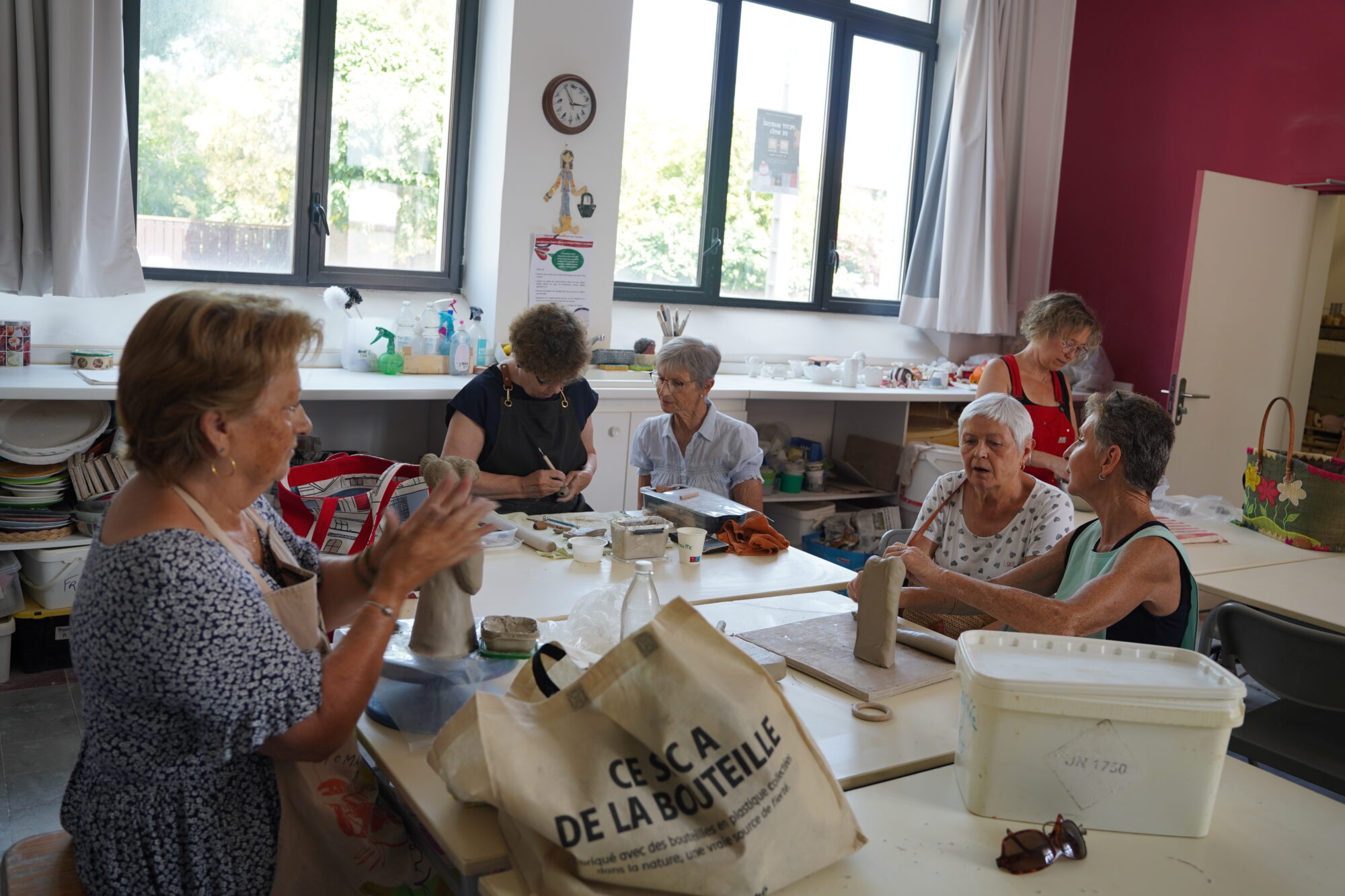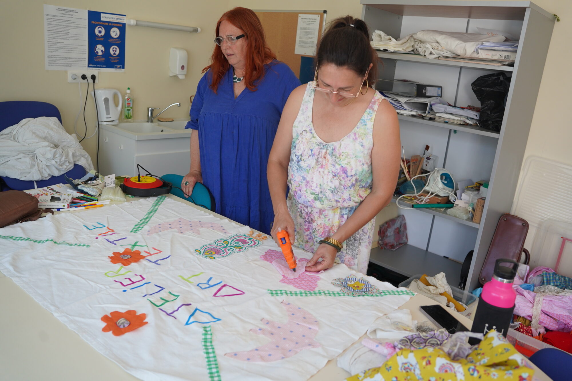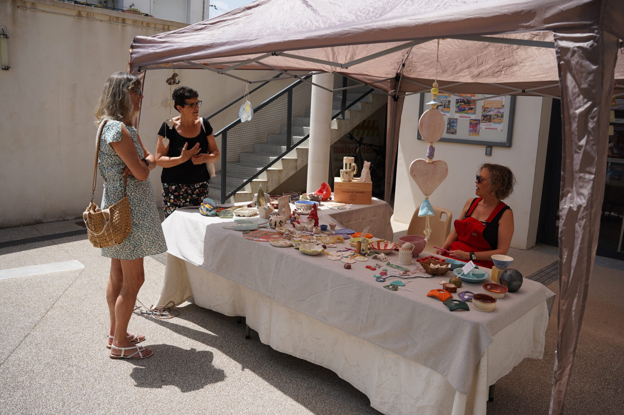 Vivre la terre a dévoilé de nombreuses créations et invité adultes et enfants à façonner leur première œuvre. Le Temps jadis a ouvert les portes de son atelier de couture et présenté les nombreux costumes confectionnés pour toutes les grandes célébrations de la ville. Créapatch a exposé plusieurs pièces de tissu brodées avec soin, apportant à la cour ses couleurs estivales. Enfin, deux artistes plasticiennes représentant l’association Tisseuse de liens ont accueilli les volontaires pour un atelier d’art textile dans le cadre du projet collaboratif Des drapeaux pour ma ville adressé à l’ensemble des habitants de Frontignan la Peyrade. Chantal Carrion, conseillère municipale déléguée aux solidarités et à la justice sociale, 1ère vice-présidente du CCAS qui s’est rendue aux portes ouvertes dès le début de l’après-midi, a salué l’investissement des associations et encouragé les visiteurs à découvrir le panel d’activités proposé à la Maison des loisirs créatifs.
