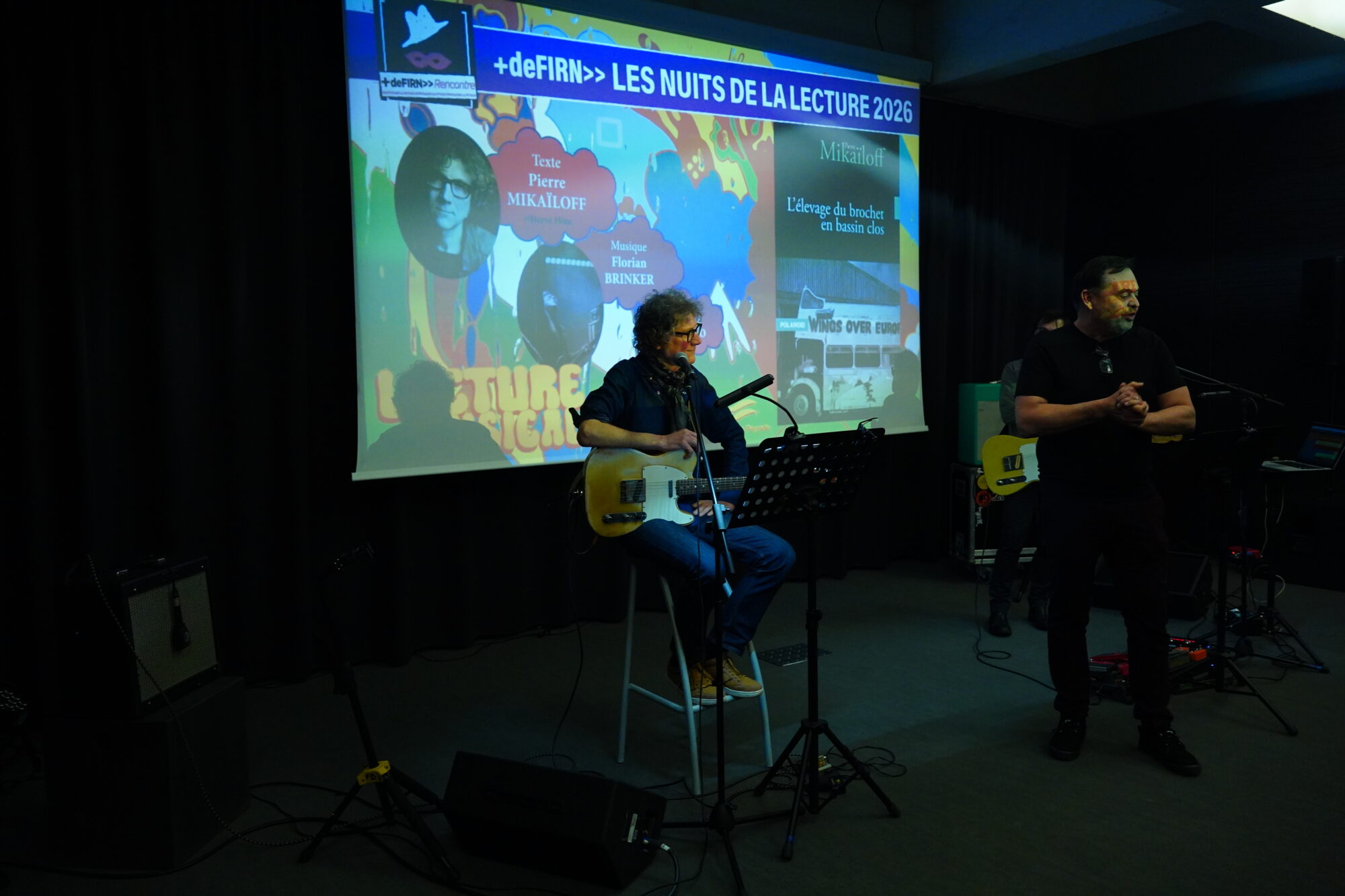Plus de 70 spectateurs captivés ont pris place dans l’auditorium de la médiathèque Montaigne pour découvrir la lecture musicale créée autour du roman L’Élevage du brochet en bassin clos avec Pierre Mikaïloff, son auteur, Florian Brinker, guitariste, et Géraldine Giordano, documentariste. Une belle performance voix, musique et mise en images dans le cadre des nuits de la lecture +deFIRN qui a charmé l’ensemble du public.