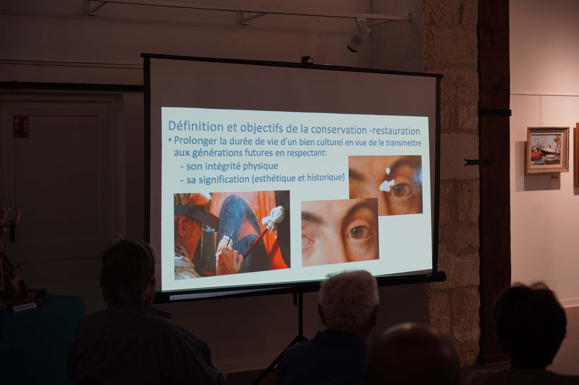 À 17h30, le public a tout d’abord eu l’occasion d’échanger avec Solenne Gout, restauratrice et conservatrice d’art, venu présenter son travail et partager de nombreuses anecdotes.