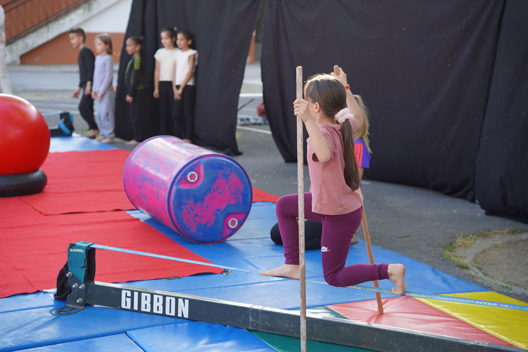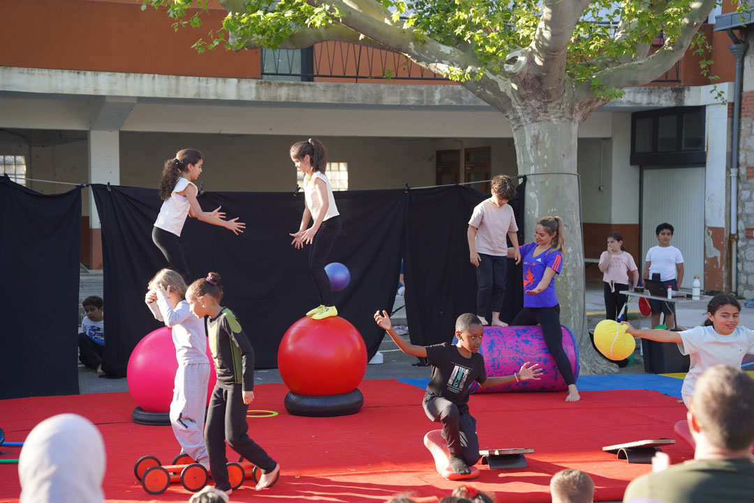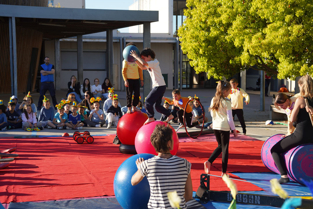 Encadrés par les éducateurs sportifs de la municipalité et l’école de cirque La Boîte aux Cirquouités, les élèves ont progressivement apprivoisé plusieurs disciplines circassiennes, développant à la fois leur motricité, leur confiance en eux et leur créativité.