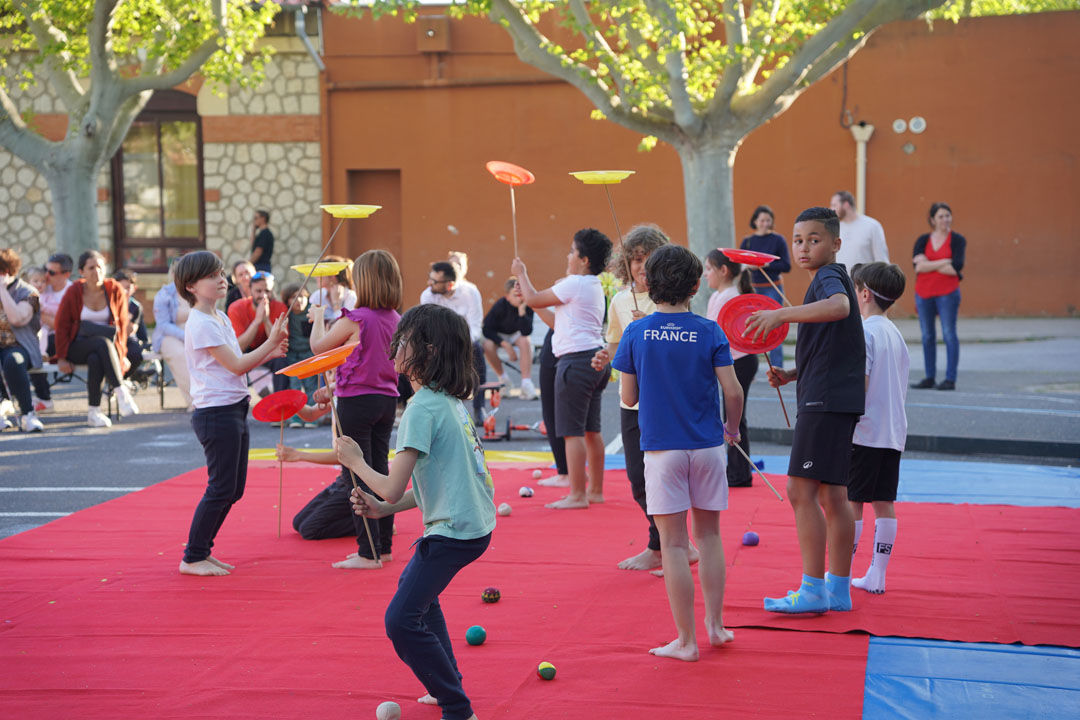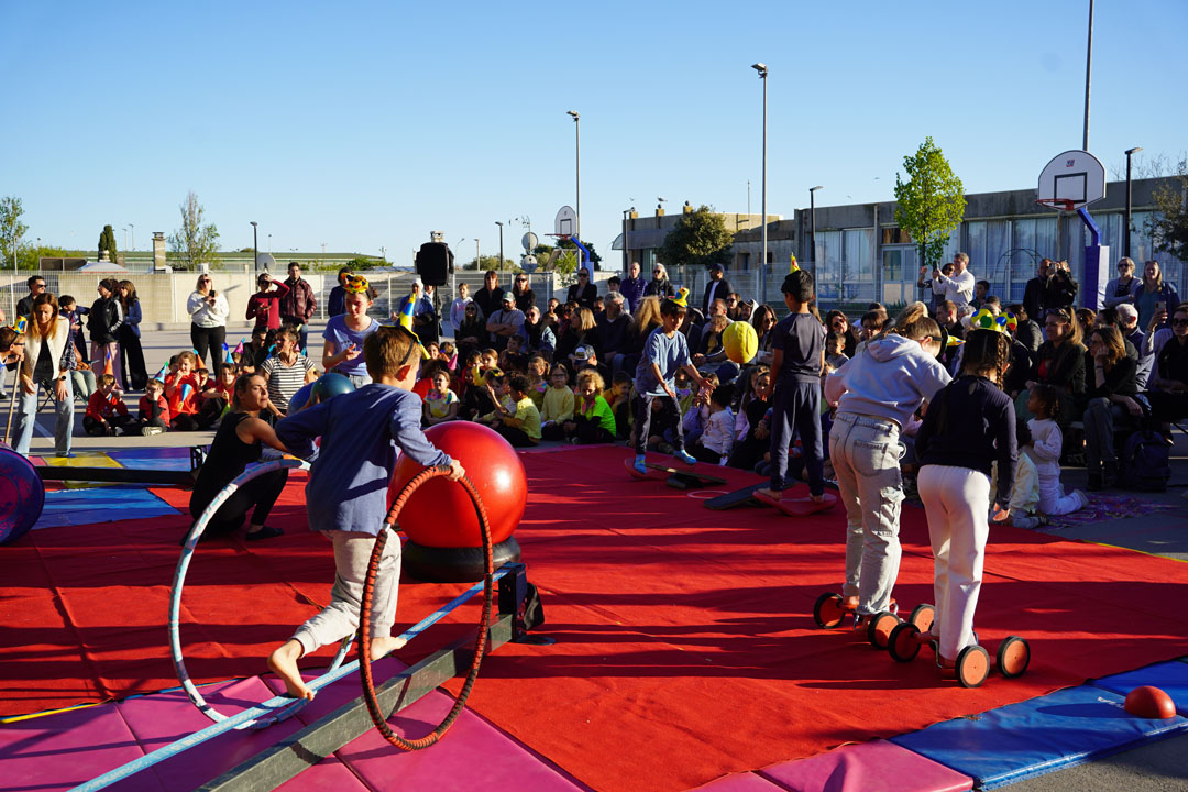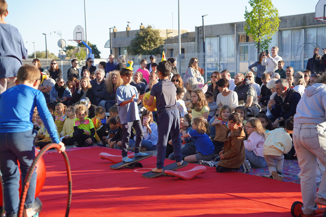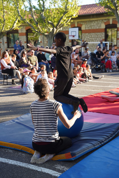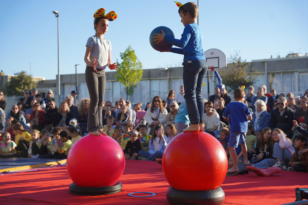 Mardi 7 avril, dans la cour de l’école des Lavandins, puis jeudi 9 avril à l’école Anatole-France, élèves, familles et enseignants ont assisté à des démonstrations pleines d’énergie. Jonglage, équilibres, acrobaties, etc., les enfants ont su captiver leurs fans venus en nombre et partager leur enthousiasme, dans une ambiance conviviale et chaleureuse.
