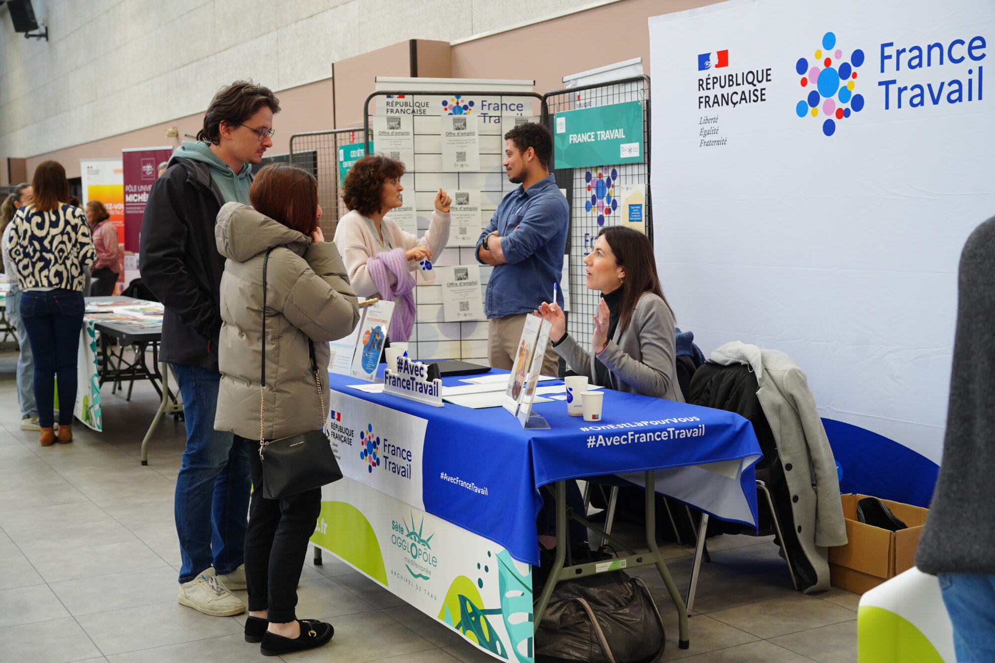 Agents de l’agglopôle, entreprises, organismes publics et associations locales, qui exercent au quotidien des missions variées, concrètes et essentielles pour notre environnement étaient mobilisés pour renseigner les visiteurs et leur présenter des offres d’emploi et d’opportunités professionnelles.