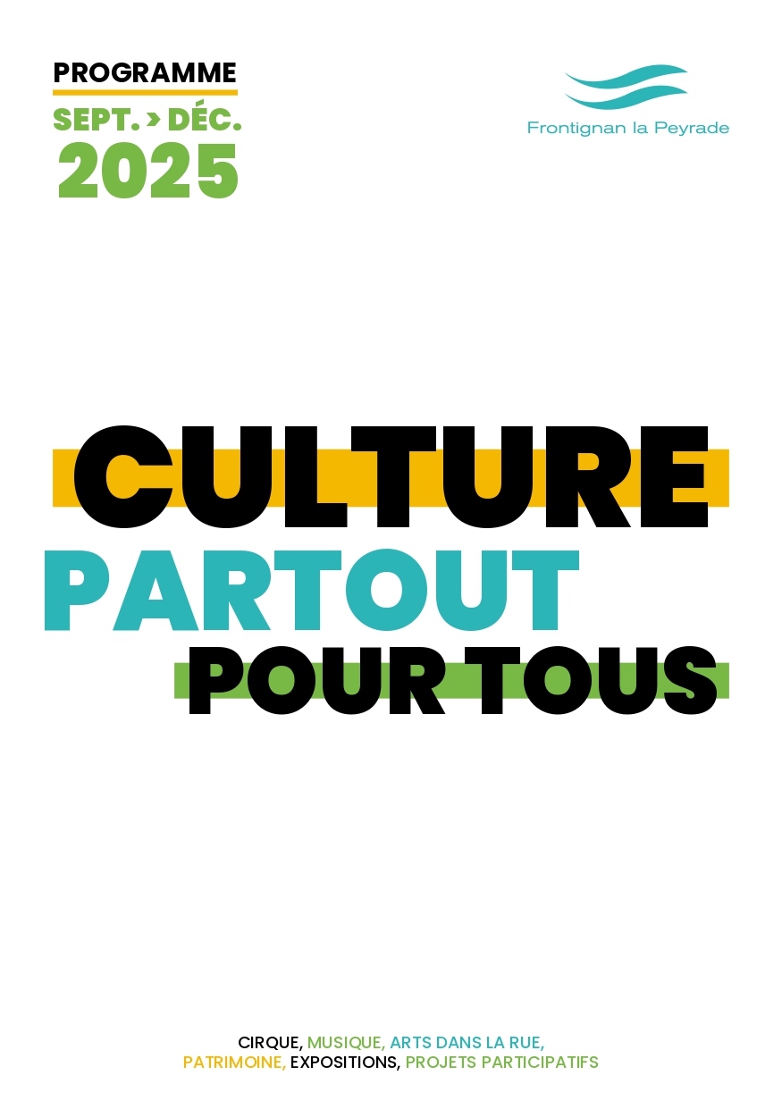 De septembre à décembre, Frontignan la Peyrade propose une nouvelle saison culturelle où se mêleront spectacles, expositions, concerts, rencontres littéraires, patrimoine et projets participatifs. Une programmation riche, vivante et ouverte à tous les publics, avec l’ambition de faire vivre la culture comme un bien commun, à partager et à expérimenter ensemble.