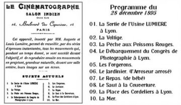 Le 28 décembre 1895, au Grand Café, situé 14 du boulevard des Capucines à Paris, dans une salle de billard du sous-sol aménagée pour l’occasion en salon au décor indien, la première représentation du cinématographe des frères Louis et Auguste Lumière rassemble, l’après-midi, quelques invités triés sur le volet. Le soir, c’est la première séance publique payante. Pour un franc, trente-trois spectateurs se laissent attirer par l’affiche du « Cinématographe Lumière ». Dix films d’une minute, dont celui de la sortie des ouvriers de l’usine Lumière à Lyon, sont présentés. Parmi les spectateurs, Georges Méliès, magicien et directeur de Théâtre, comprend très vite que cette machine révolutionnaire représente l’avenir de la profession. Mais les frères Lumières refusent de lui vendre leur cinématographe, comme ils le feront également aux directeurs des Folies-Bergère et du Musée Grévin.