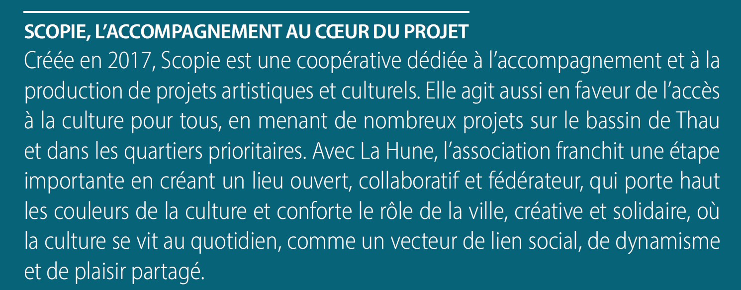 Avec La Hune, Frontignan la Peyrade, partenaire du projet et Scopie renforcent leur ambition commune : soutenir la création, renforcer l’accès à la culture et faire vivre le centre-ville à travers de nouvelles dynamiques culturelles et sociales.