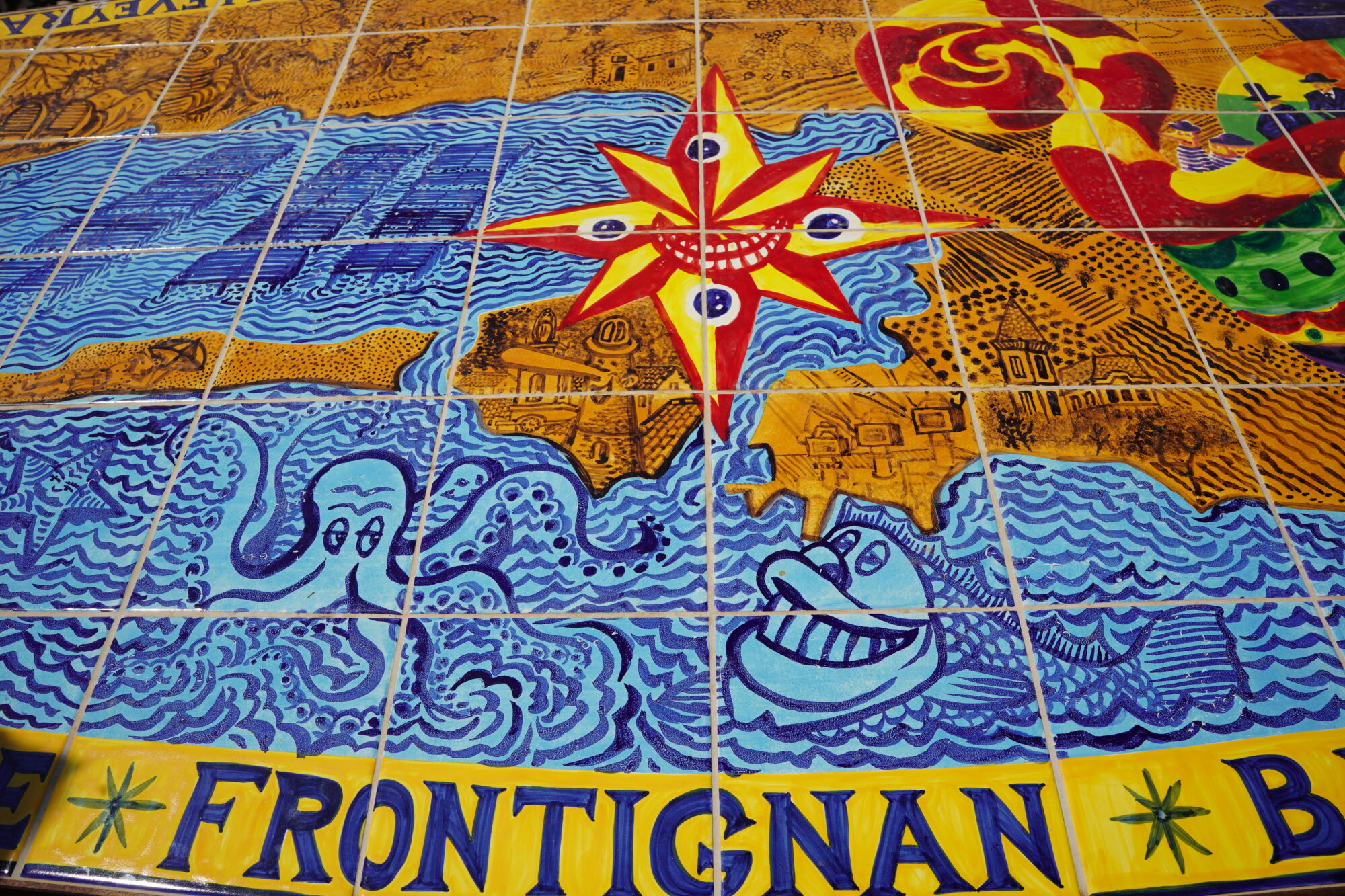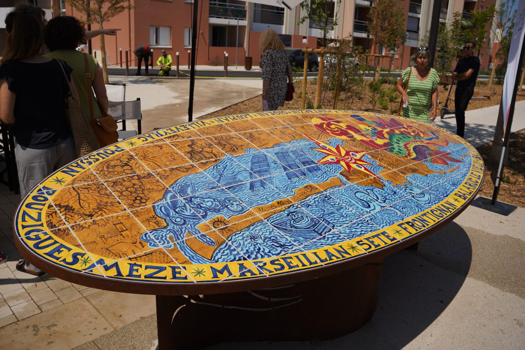 « La culture a ce pouvoir de rassembler, quels que soient les opinions ou les bords politiques. Je suis heureux d’avoir pu mobiliser 20 artistes pour ce projet mené avec l’agglo. Pour moi, installer mon œuvre à Frontignan était une évidence. J’y ai habité, mes enfants y sont nés, j’y suis attaché. Quand Michel Arrouy m’a montré ce lieu, j’ai été séduit. J’ai voulu créer un objet esthétique, mais accessible, proche des gens, à la manière des azulejos qu’on voit à Lisbonne. En me souvenant des tables d’orientation qu’on trouve en montagne, j’ai eu envie de détourner le concept pour imaginer une table de désorientation en plein centre-ville. Une œuvre qui évoque les paysages du Bassin de Thau, la vigne, la garrigue, les salins, la mer, les plages, les salins et les étangs, les potagers… et qui symbolise aussi l’unité des 14 communes de l’agglo. »
