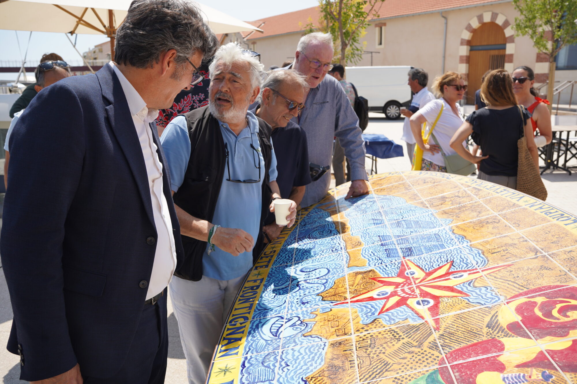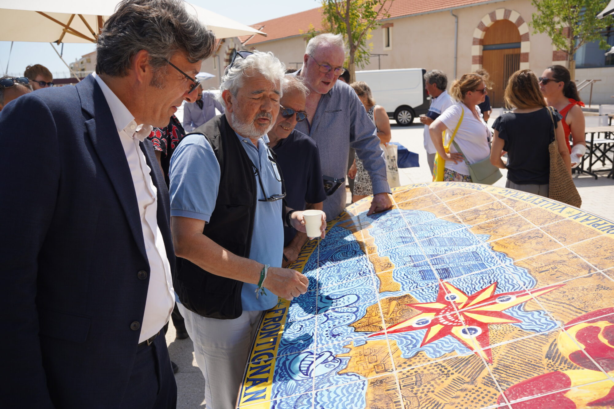 Mercredi 18 juin, le célèbre artiste Hervé Di Rosa était présent pour l’inauguration de la Table de désorientation qu’il a réalisée dans le cadre des balades artistiques en Méditerranée lancées par Sète Agglopôle Méditerranée (SAM). Une œuvre installée quai Voltaire, face au nouveau pôle culturel municipal de Frontignan la Peyrade. Cette inauguration qui s’est tenue notamment en présence de Loïc Linares, président de Sète Agglopôle Méditerranée, conseiller municipal délégué à l’aménagement durable et à la transition démocratique, de Michel Arrouy, maire de Frontignan la Peyrade, conseiller communautaire, de Valérie Maillard, adjointe à la culture, au patrimoine et à l’égalité femmes-hommes et bien sûr de l’artiste.