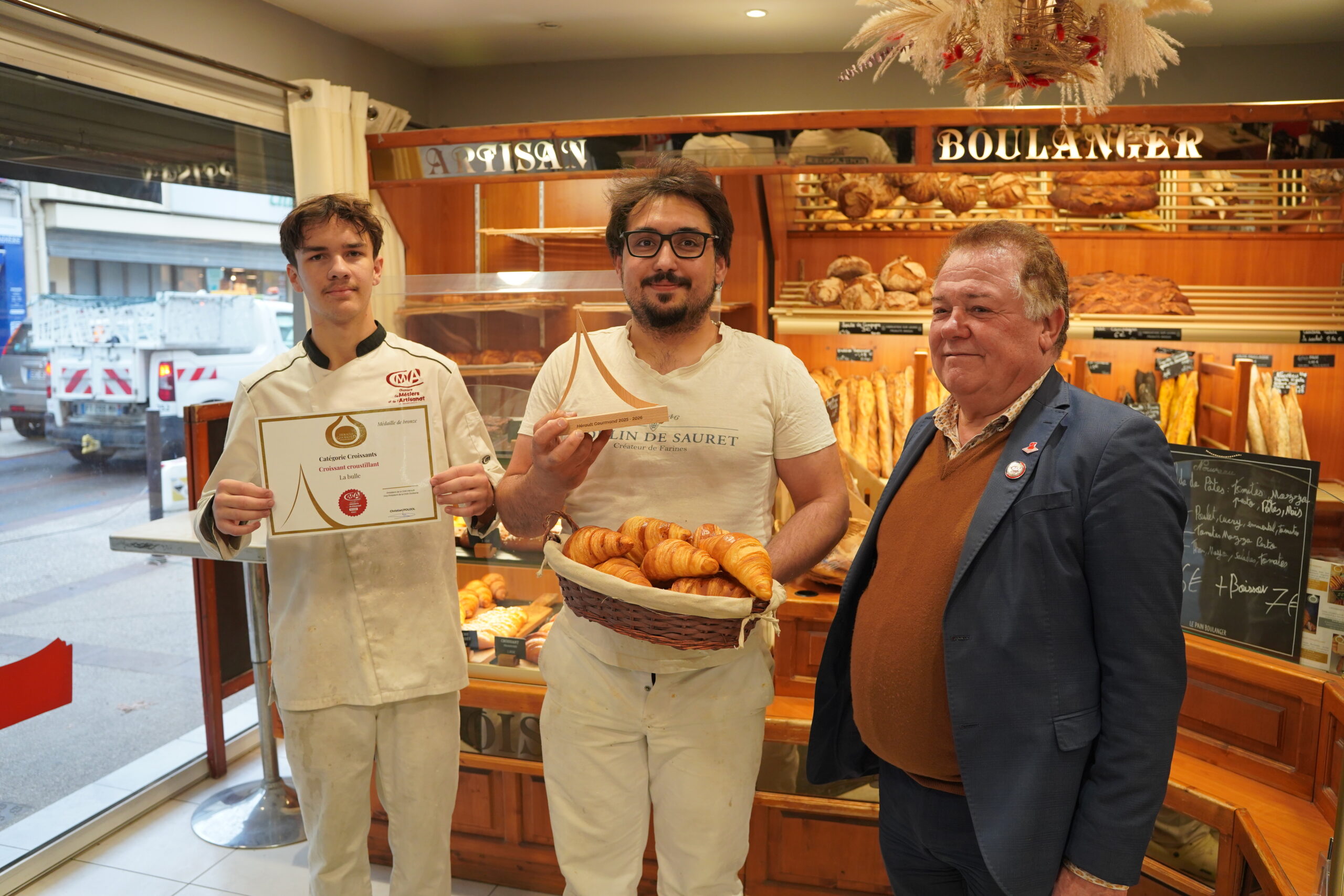 Parmi les 74 artisans récompensés par la Chambre de Métiers et de l’Artisanat (CMA) lors de l’édition 2025 du prix Hérault Gourmand, trois artisans installés à Frontignan la Peyrade se sont distingués. Jeudi 6 novembre, le président de la CMA est venu à leur rencontre, accompagné du maire de la ville et du conseiller municipal délégué au commerce et à l’artisanat.