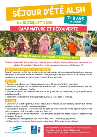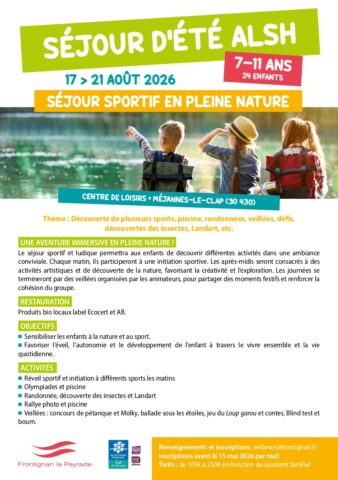 Infos et inscription : avant le 15 mai 2026 à enfance@frontignan.fr // Tarifs : de 105 à 250 € selon le quotient familial